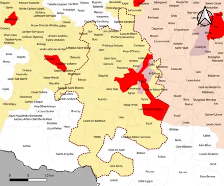 | Lanne-en-Barétous | 64310 | Pyrénées-Atlantiques | commune de la couronne | 41,48 | 487 (2021) | 12 | |