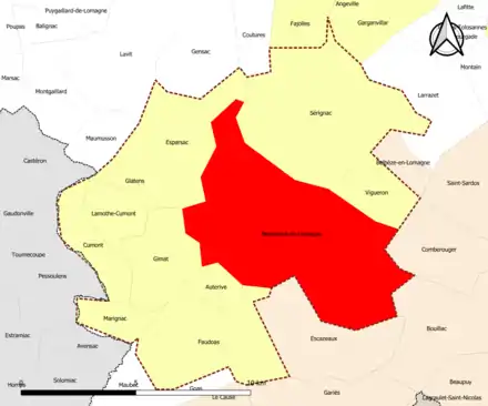Localisation de l'aire d'attraction de Beaumont-de-Lomagne dans le département de Tarn-et-Garonne. | |