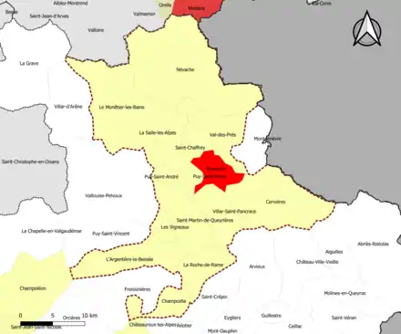 | Puy-Saint-Pierre | 05109 | Hautes-Alpes | commune de la couronne | 7,74 | 516 (2021) | 67 | |