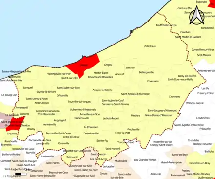 Localisation de l'aire d'attraction de Dieppe dans le département de la Seine-Maritime. | |