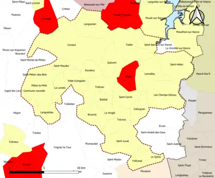 Localisation de l'aire d'attraction de Dinan dans le département des Côtes-d'Armor. | |