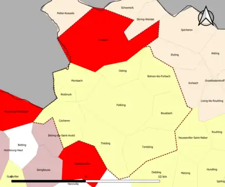 | Folkling | 57222 | Moselle | commune de la couronne | 11,87 | 1 374 (2021) | 116 | |
