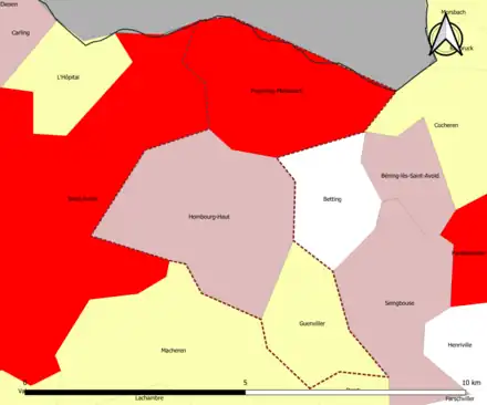 | Hombourg-Haut | 57332 | Moselle | commune du pôle principal | 12,25 | 6 267 (2021) | 512 | |