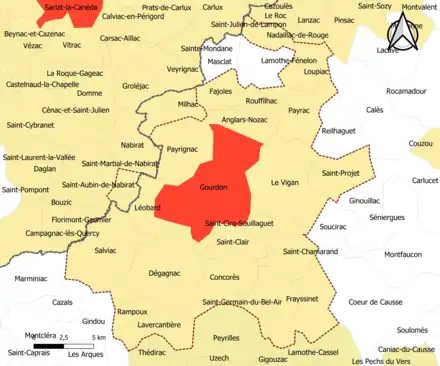 Localisation de l'aire d'attraction de Gourdon dans le département du Lot. | |