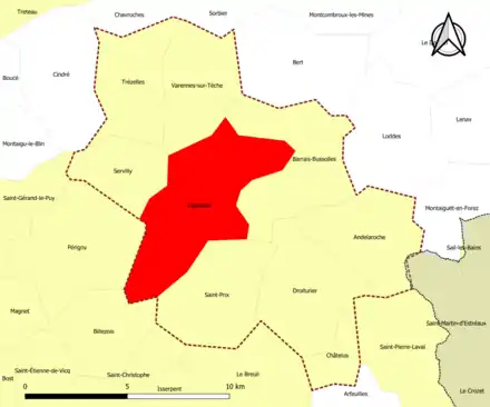 Localisation de l'aire d'attraction de Lapalisse dans le département de l'Allier. | |