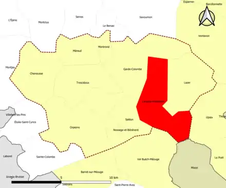 | Lazer | 05073 | Hautes-Alpes | commune de la couronne | 21,98 | 339 (2021) | 15 | |