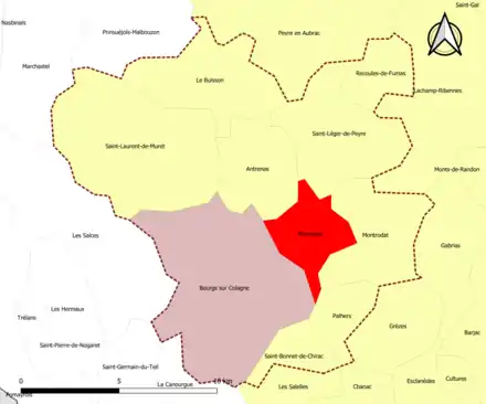 | Montrodat | 48103 | Lozère | commune de la couronne | 20,65 | 1 180 (2021) | 57 | |