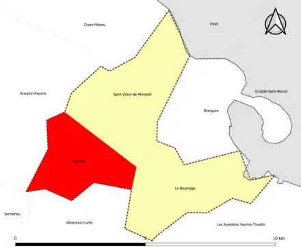 Localisation de l'aire d'attraction de Morestel dans le département de l'Isère. | |