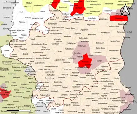 | Nombre de communes | 132 soit 131 (Haut-Rhin) + 1 (Territoire de Belfort) |