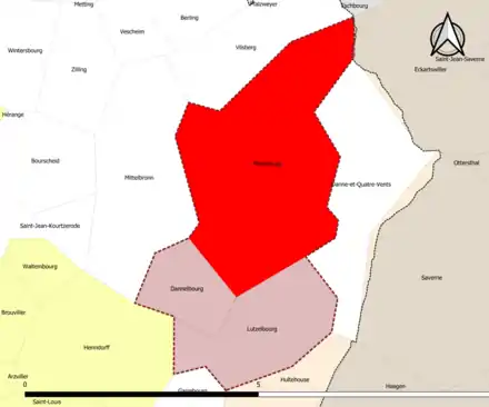 | Lutzelbourg | 57427 | Moselle | commune du pôle principal | 5,84 | 564 (2021) | 97 |