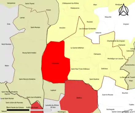 | Nombre de communes | 17 soit 10 (Drôme) + 6 (Ardèche) + 1 (Vaucluse)) |