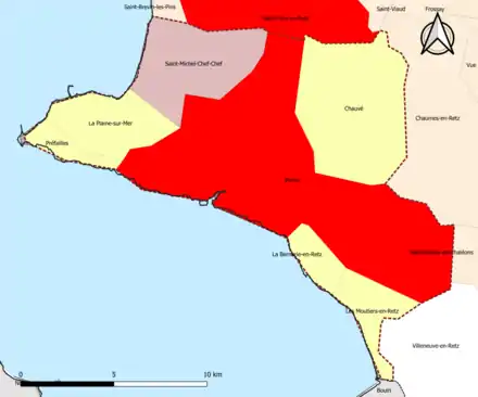 | La Bernerie-en-Retz | 44012 | Loire-Atlantique | commune de la couronne | 6,09 | 3 364 (2021) | 552 | |