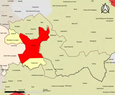 Localisation de l'aire d'attraction de Revel dans le département de la Haute-Garonne. | |