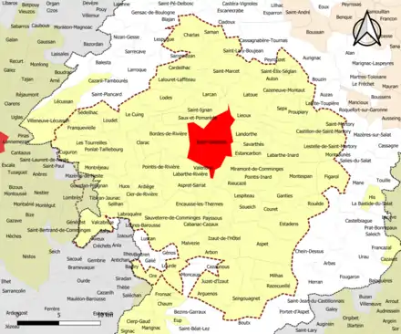 Localisation de l'aire d'attraction de Saint-Gaudens dans le département de la Haute-Garonne. | |