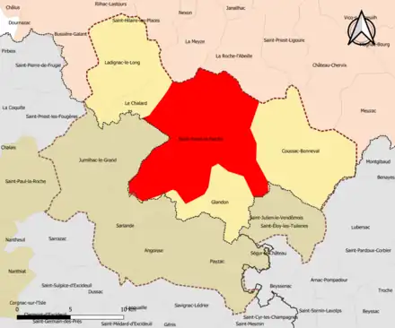 | Nombre de communes | 11 soit 5 (Haute-Vienne) + 4 (Dordogne) + 2 (Corrèze) |