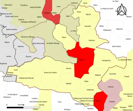 | Saint-Vincent-sur-Jabron | 04199 | Alpes-de-Haute-Provence | commune de la couronne | 30,20 | 169 (2021) | 5,6 | |