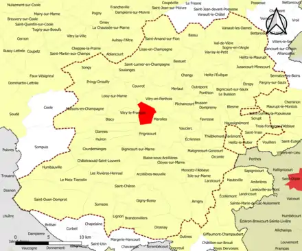Localisation de l'aire d'attraction de Vitry-le-François dans le département de la Marne. | |