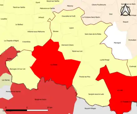 | Clermont-Créans | 72084 | Sarthe | commune de la couronne | 17,82 | 1 274 (2021) | 71 | |