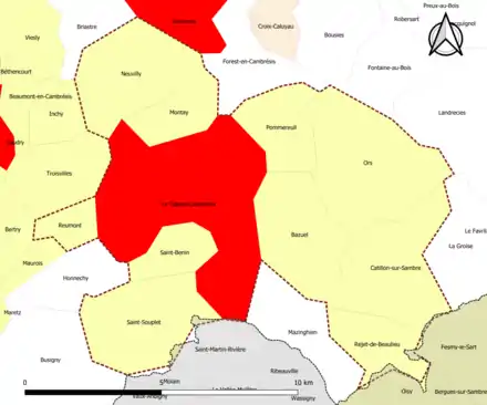 | Saint-Souplet | 59545 | Nord | commune de la couronne | 12,66 | 1 203 (2021) | 95 |
