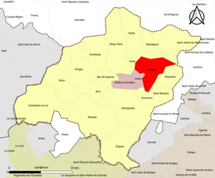 | Molières-Cavaillac | 30170 | Gard | commune du pôle principal | 7,71 | 908 (2021) | 118 | |