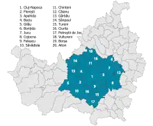 Puisque c'est un projet en cours, toutes les communes visées n'en font pas encore partie. Ainsi, dans une première étape (déjà fonctionnelle), seulement la ville de Cluj-Napoca et 17 communes en font partie : Aiton, Apahida, Baciu, Bonțida, Borșa, Căianu, Chinteni, Ciurila, Cojocna, Feleacu, Florești, Gârbău, Gilău, Jucu, Petreștii de Jos, Tureni et Vultureni. À partir du début du XXIe siècle, la plupart de ces communes connaissent un phénomène de rurbanisation.