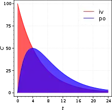 Dans le domaine de la pharmacocinétique, on utilise souvent l'aire sous la courbe d'un graphique représentant la concentration plasmatique d'un médicament en fonction du temps.