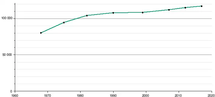 L'évolution démographique ci-dessous concerne l'aire urbaine selon le périmètre défini en 2010.