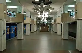 Établie en souterrain, la station Akademmistetchko, est un terminus de la Ligne Svyatochins'ko-Brovars'ka (M1) du métro de Kiev. Terminus ouest de la ligne M1 elle est située avant la station Jitomirska, en direction du terminus est Lisova[1].
