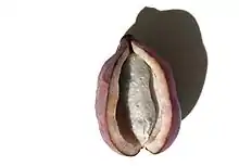 Les fruits de différentes couleurs selon les variétés (du blanc au pourpre-bleu) murissent entre septembre et octobre. La pulpe douce et gélatineuse représente entre 17 % et 40 % du poids de fruits[1], elle entoure les graines (amères si on les croque). Le mésocarpe amer se mange cuit.