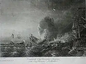 - Il ne fut pas longtemps à s'en venger puisque nous convînmes qu'il retournerait la nuit le brûler quoiqu'il fût défendu de tous côtés de la ville et par seize pièces de canon et vingt pierriers qu'il avait, son équipage s'étonna de la résolution avec laquelle on y allait et sauta à la mer lorsqu'il vit qu'on l'abordait… »