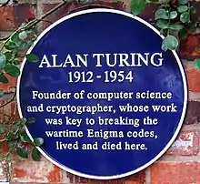 Alan Mathison Turing, né le à Londres et mort le à Wilmslow, est un mathématicien et cryptologue britannique, auteur de travaux qui fondent scientifiquement l'informatique. Il est aussi un des pionniers de l'Intelligence artificielle.