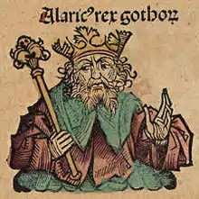 Alaric Ier (en gotique, Alareiks𐌰𐌻𐌰𐍂𐌴𐌹𐌺𐍃), né vers 370 à Pteros (en Dobrogée, dans l'actuelle Roumanie), mort en 410 en Italie, est un aristocrate wisigoth, roi des Wisigoths de 395 à 410. Il est particulièrement connu, en raison de la prise et du pillage d'Athènes en 396, puis de Rome en 410.