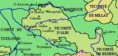 Au début du Xe siècle, le nom d'Albigeois désignait les vicomtés d'Albi et d'Ambialet, de Lautrec et de Paulin. L’Albigeois ne remonta au rang de comté qu'en 987 quand Guillaume Taillefer, comte de Toulouse, la céda à son frère Pons qui prit le titre de comte d'Albi. À cette époque les seigneurs locaux avaient peu de liens avec le pouvoir royal et maintenaient une large autonomie vis-à-vis de celui-ci.