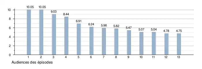 Cependant, la série chute dès la semaine suivante, avec 6,91 millions de téléspectateurs[36] présents pour le cinquième épisode. La tendance ne s'inverse pas et la série ne parvient pas à se stabiliser, c’est ainsi que pour les sixième et septième épisodes, les téléspectateurs ne sont plus que respectivement 6,24 millions[37] et 5,98 millions[38].