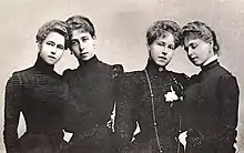 De gauche à droite : les princesses Béatrice, Victoria-Mélita, Alexandra et Marie vers 1900.