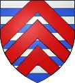Burelé d'argent et d'azur, à trois chevrons de gueules, brochant sur le burelé, le premier chevron écimé.[10] |