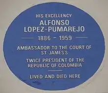 Alfonso López Pumarejo est mort à Londres le , à l'âge de 73 ans. La maison où il mourut, no 33 Wilton Crescent, dans le quartier de Belgravia, a une plaque commémorative à lui.