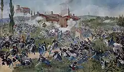 Ainsi, le matin du 25 juillet, deux corps autrichiens attaquent le corps de Bava avec un rapport de troupes de 2 à 1. La 4e division, qui constitue l'aile droite du dispositif piémontais près de Sommacampagna, subit de nombreux assauts et tentatives de débordement, opposant une résistance vigoureuse aux forces autrichiennes prépondérantes. Après une journée de combat, la retraite vers des positions plus sûres n'a pu se faire qu'en combattant l'ennemi centimètre par centimètre et les derniers à quitter le terrain furent le duc de Gênes et son chef d'état-major Alfonso La Marmora[13].
