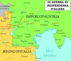 Après les Cinq Jours de Milan et les soulèvements du "Printemps des peuples", Carlo Alberto, initialement soutenu également par les États pontificaux et le royaume des Deux-Siciles, décide d'attaquer l'Empire autrichien. La première guerre d'indépendance italienne commence.