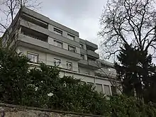 Complexe administratif implanté de part et d’autre de la route cantonale N5, conçu par Georges-Jacques Haefeli. Le bâtiment administratif en verre et aluminium est complété par trois constructions : un complexe de quatre appartements de service, un immeuble réservé à l’hébergement des collaborateurs externes et un restaurant d'entreprise, avec cuisine, terrasse, bassin de natation et salles de réunion en front de lac.