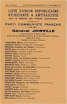 Il est député PCF de la Seine — sous le nom de Malleret-Joinville — de 1945 à 1958. Par ailleurs, il conduit, sans succès, la liste communiste en tant que « général Joinville » aux élections municipales d'Alfortville en 1951.