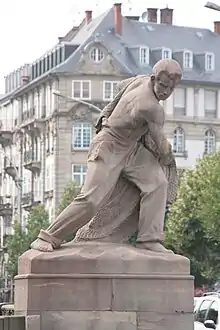 Après l'extension de l'hôpital civil de 1875 à 1918, Gustave Oberthür demande à Alfred Marzolff de réaliser le buste du professeur de pathologie chirurgicale (1871-1900) Eugène Boeckel (1903) dans l'enceinte de l'Hôpital civil, derrière l'ancienne pharmacie[52]. Sa statue Allégorie de la maladie pour la commémoration de Pasteur n'est pas retenue. Cette statue d'un homme terrassant un serpent (1919) sera installé en haut des escaliers de l'Institut de bactériologie devant l'entrée des Urgences de l'hôpital civil de Strasbourg, 3, rue Koeberlé.