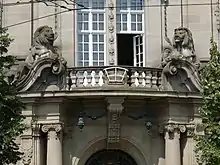 Bains-douches d'Oberthür à Haguenau, sculptures des Putti d'A. Marzolff. Place Robert-Schuman.