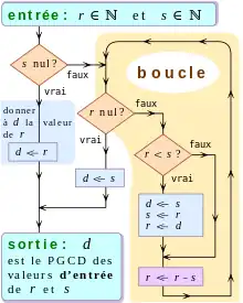 L' algorithme peut être mis en forme de façon graphique dans un algorigramme ou organigramme de programmation.