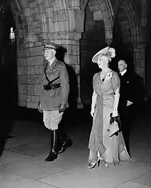Pendant la guerre, les trois petits-enfants du couple, Anne, Richard et Elizabeth, s'installent auprès d'eux à Rideau Hall[15]. De nombreuses personnalités royales s'exilent au Canada et sont accueillies par le couple, dont le prince héritier Olav de Norvège et la princesse Märtha de Suède, la grande-duchesse Charlotte de Luxembourg et le prince Félix de Bourbon-Parme, le roi Pierre II de Yougoslavie, le roi Georges II de Grèce, l'impératrice d'Autriche Zita de Bourbon-Parme et ses filles, ainsi que la reine Wilhelmine des Pays-Bas et sa fille la princesse héritière Juliana[16]. De plus, en décembre 1941, le premier ministre britannique Winston Churchill arrive à Rideau Hall, où il préside aux réunions du Cabinet par téléphone depuis son lit[17].