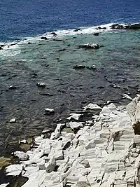 Le niveau d’exploitation des carrières du bord de la mer devait être assez proche de celui de l’eau pour qu’on les dote de murets constitués de roches laissées en place et servant pour ainsi dire de brise-lames.