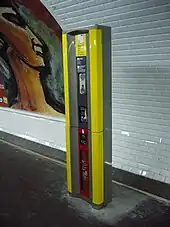 - à pied d’œuvre sur une section de ligne, en enlevant une barrette des avertisseurs d'alarme (AA), disposées sur chaque quai de station et tous les cent mètres sur la ligne, en tunnel ou en viaduc[10] ;