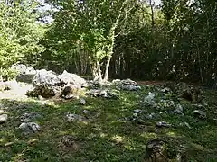 L'allée s'étire sur 7,20 m de long et sa largeur oscille entre 0,50 m et 090 m. Elle est enserrée dans un tumulus d'une quinzaine de mètres de diamètre d'environ d'une hauteur de 0,40 m maximum. L'allée est constituée d'orthostates en silex meulier. Une dalle intermédiaire de segmentation y avait été signalée en 1935 par M. Secondat et R. Marchadier mais il n'en existe plus trace. L'ensemble est recouvert par trois tables de couverture en partie effondrées dont une dalle magistrale de 3 m de long pour 2,30 m de large et 0,40 m d'épaisseur[2].