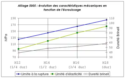 - H : écroui. Cet état ne s'applique qu'aux alliages à durcissement par écrouissage ;