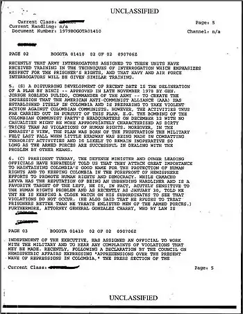 - « Documentos desclasificados Embajada de EEUU en Colombia »